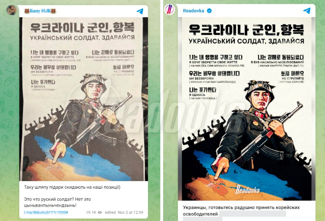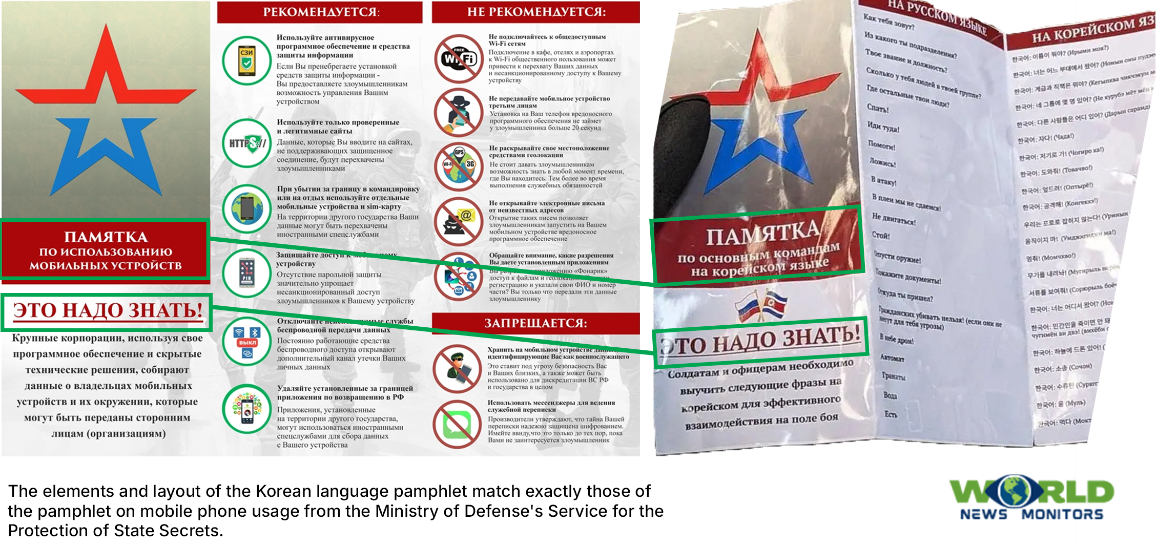 Picture on the right is the pamphlet that is being distributed as an evidence of North Korean troops presence in Ukraine together with the Russian forces.