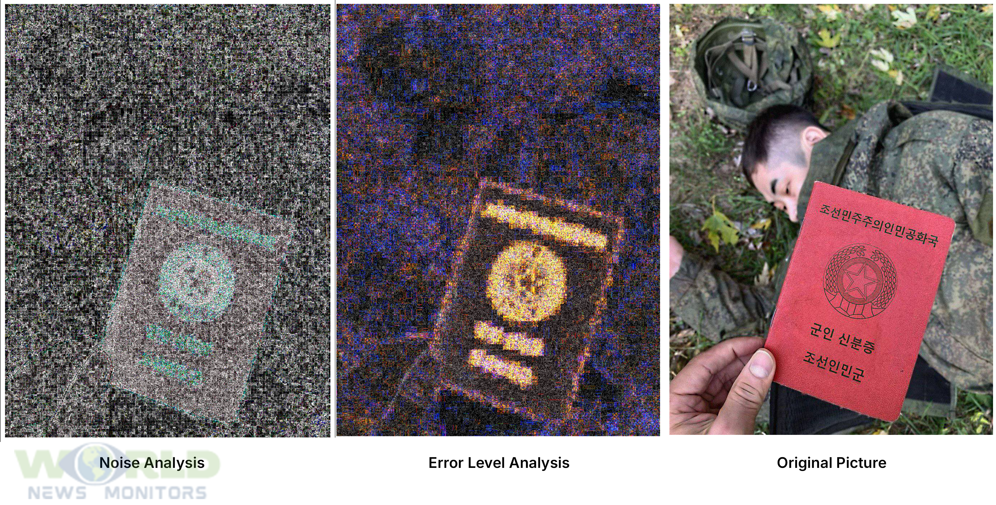 Alongside reports of North Korean troops in Ukraine, various pieces of purported evidence have surfaced online to support these claims. Among them is a photo allegedly showing a deceased ‘North Korean’ soldier with a military ID. While the document itself raises questions, the photo manipulation is very easily detected with the noise and level analysis filters.