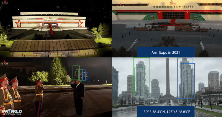 On July 27, the Russian delegation visited Arm Expo [‘무장장비전시회’ -Armed Equipment Exhibition]. The event is held in one of the building of ‘Three Revolutions Exhibition’ [3대혁명전시관] located at 39° 4’49.10″N, 125°45’27.23″E in Pyongyang. Arm Expo of 2021 was also held in the same building: