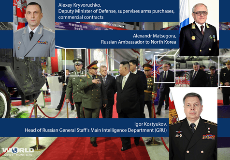 On the photographs published by the North Korean newspaper ‘Rodong Sinmun’, one can identify some members of the Russian delegation, including Alexey Kryvoruchko – Deputy Minister of Defense, Alexandr Matsegora – Russian Ambassador to the DPRK and Igor Kostyukov – Head of the Main Directorate of the General Staff of the Armed Forces of the Russian Federation (GRU). GRU is the main foreign military intelligence agency of Russia.