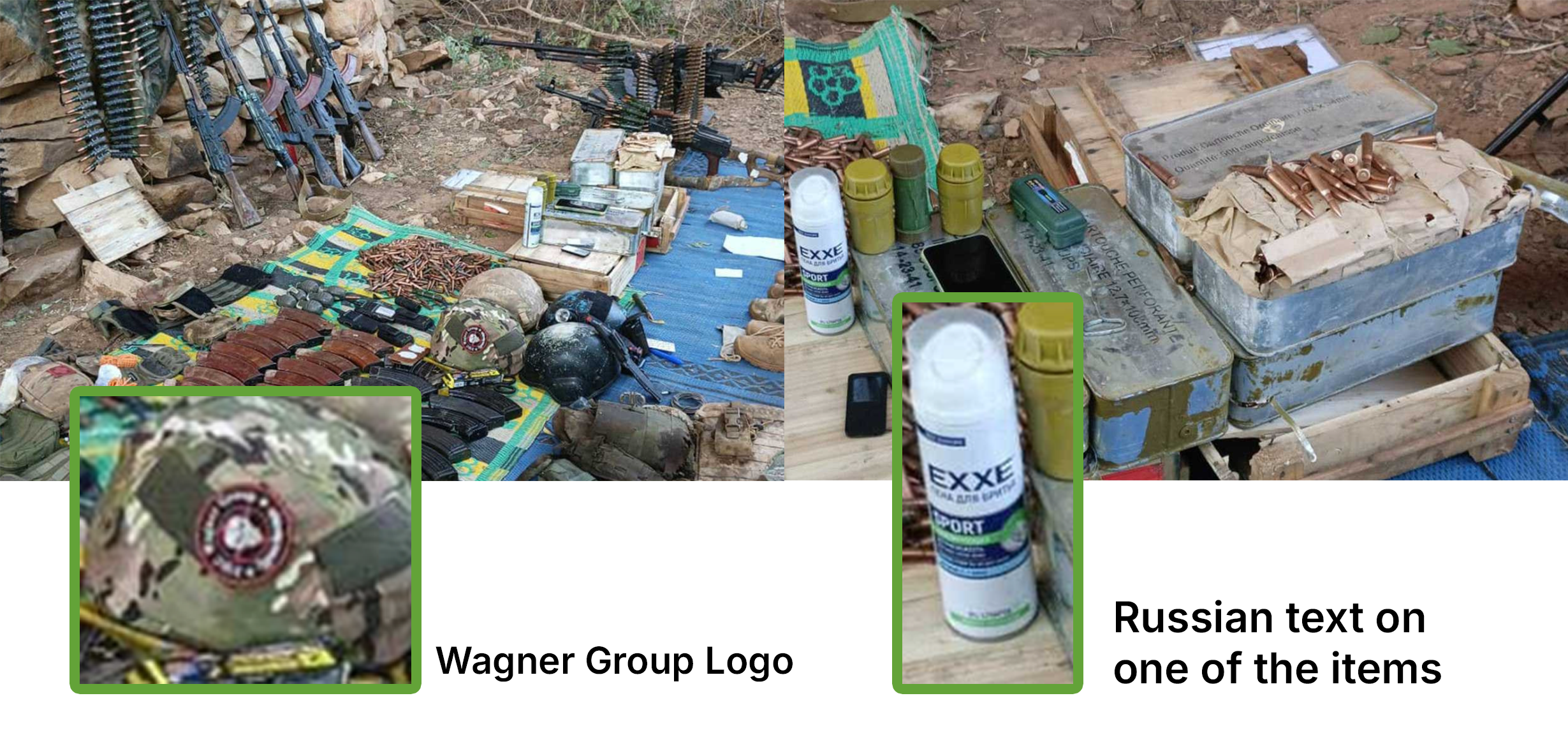 Reports indicate that Wagner forces have been involved in skirmishes near Bankas and Band Jagara, key areas in central Mali. Following one such confrontation, Az-Zallaqa claimed to have captured “trophies,” including items allegedly linked to Wagner personnel. Photos shared by the group depict a helmet featuring the Wagner logo and shaving foam labeled in Russian. However, the authenticity of these claims and materials remains unverified.