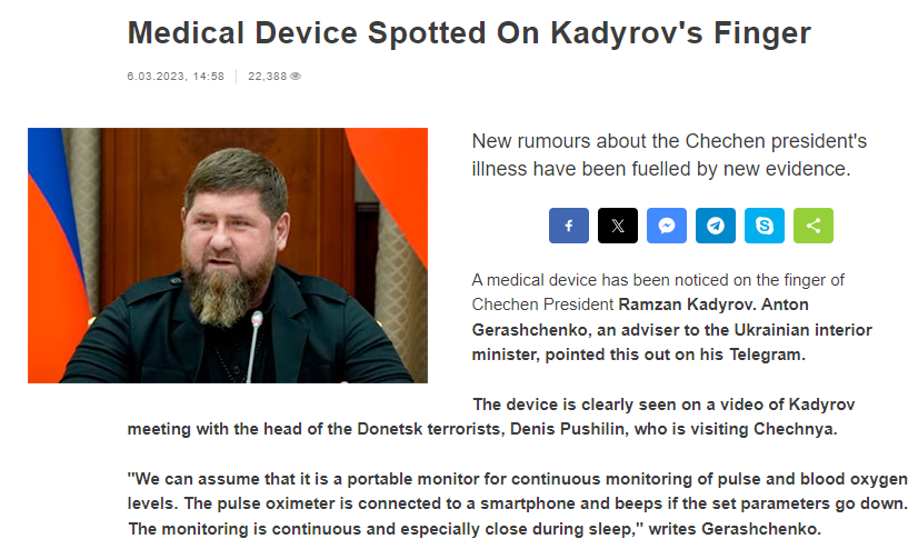 However, Kadyrov himself responded to these rumors in a Telegram post from 15th March. The device on his finger is an automatic counter he uses for religious purposes.