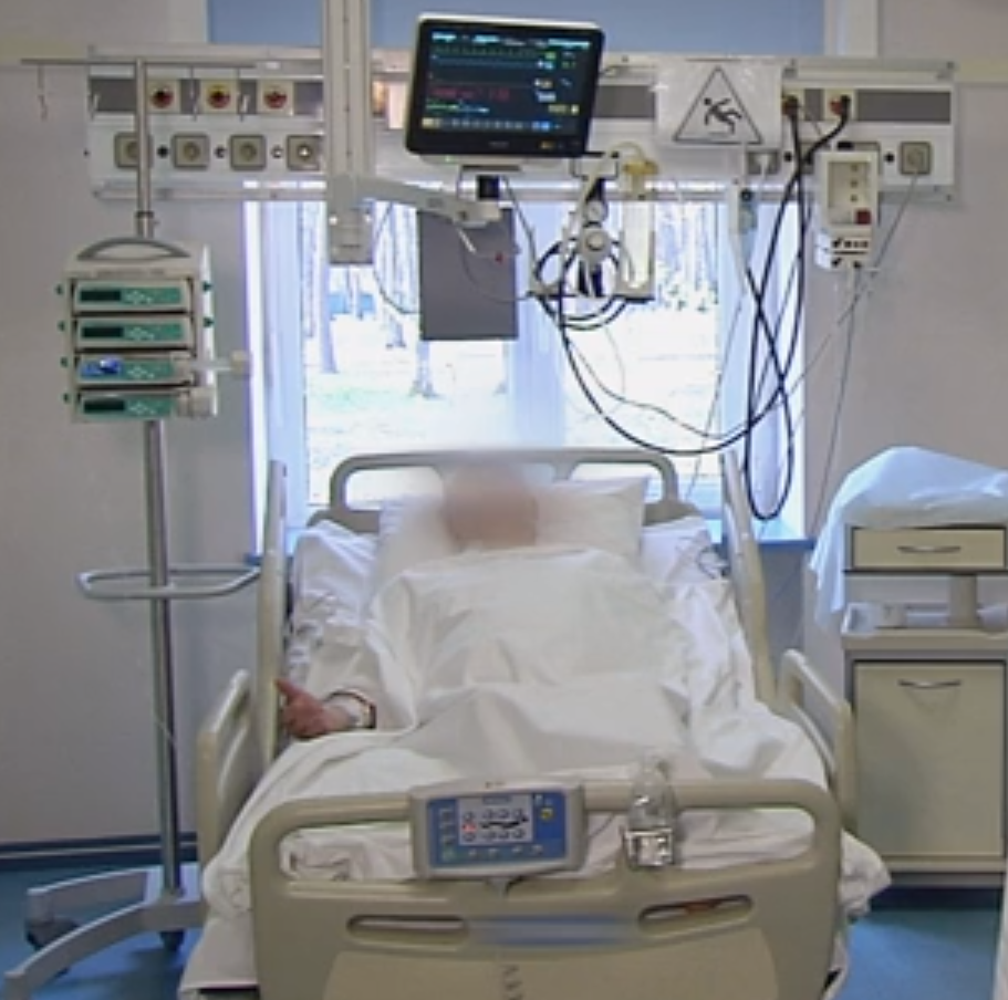 The same model of the bed can be seen used in the hospital; however, with a different set of equipment.