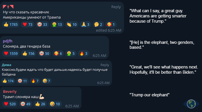 Public sentiment, as reflected in the article’s comment sections, shows overwhelming support for Trump’s agenda. Readers express approval for his actions and affectionately refer to him as “Our elephant.” This phrase not only plays on the Republican Party’s symbol but also resonates with a popular Russian meme praising strength and masculinity.