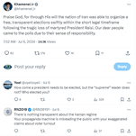 Replies to Khamenei’s tweet talking about elections and propaganda in Iran. (Source: X)