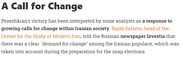 Screenshot of the article associating Pezeshkian with the “Call for Change” quoting Russian sources. (Source: Think BRICS)