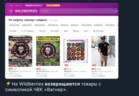 Text: “Wagner PMC merchandise is returning to Wildberries.” Source:https://t.me/c/1754252633/64104