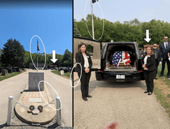 Presumably, it was Yavorskyi’s funeral that was captured in the photo on Twitter. According to the website of the funeral home, he was buried at the S. Nicholas Ukrainian Catholic Cemetery in Chicago. Except for him, there were no recent graves of young veterans according to the cemetery website.[15] This information helped geolocating the picture.