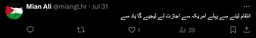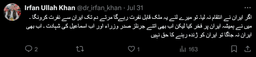The tweet in Urdu translates to: “If Iran does not take revenge, then for my sake, this country is not worth living in, and I will hate Iran until my last breath. I used to be proud of Iran, but now. However, there have been so many General Qassem Soleimani and now martyrdom of Abu Ismail. Now Iran has no right to remain alive.”