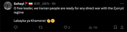 The tweet attracted attention from both supporters of the Iranian regime and advocates for Israel. Both sides expressed violent and hostile emotions towards each other. Some users called for revenge, detailing how it should be carried out, while others attacked the Iranian leader, implying he would meet a similar fate.