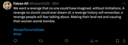 The tweet attracted attention from both supporters of the Iranian regime and advocates for Israel. Both sides expressed violent and hostile emotions towards each other. Some users called for revenge, detailing how it should be carried out, while others attacked the Iranian leader, implying he would meet a similar fate.