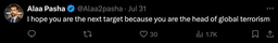 The tweet in Urdu translates to: “If Iran does not take revenge, then for my sake, this country is not worth living in, and I will hate Iran until my last breath. I used to be proud of Iran, but now. However, there have been so many General Qassem Soleimani and now martyrdom of Abu Ismail. Now Iran has no right to remain alive.”